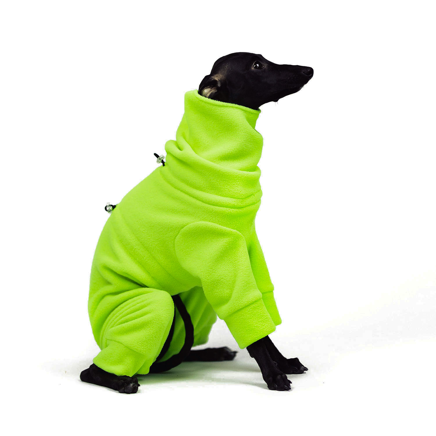 Neonowy kombinezon dla charcika włoskiego, nie sposób go przeoczyć! Idealny na długie spacery, krótkie przebieżki i wszystkie momenty pomiędzy.