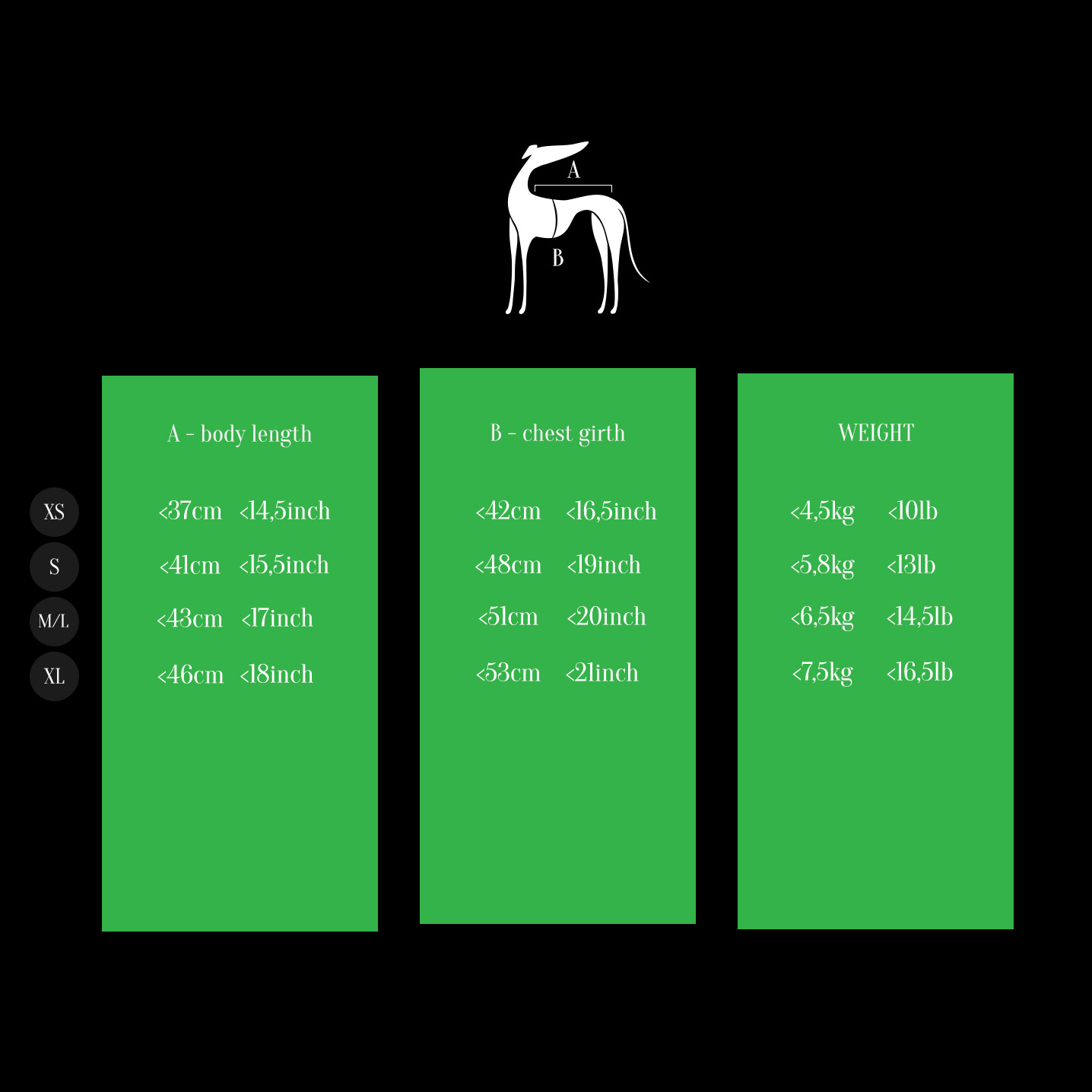 To ubranko, to doskonałe zabezpieczenie ciałka w chłodne dni, chroni całe ciało charcika. Kombinezon jest uszyty z mięsistego polaru, który grzeje, ale pozwala skórze oddychać.