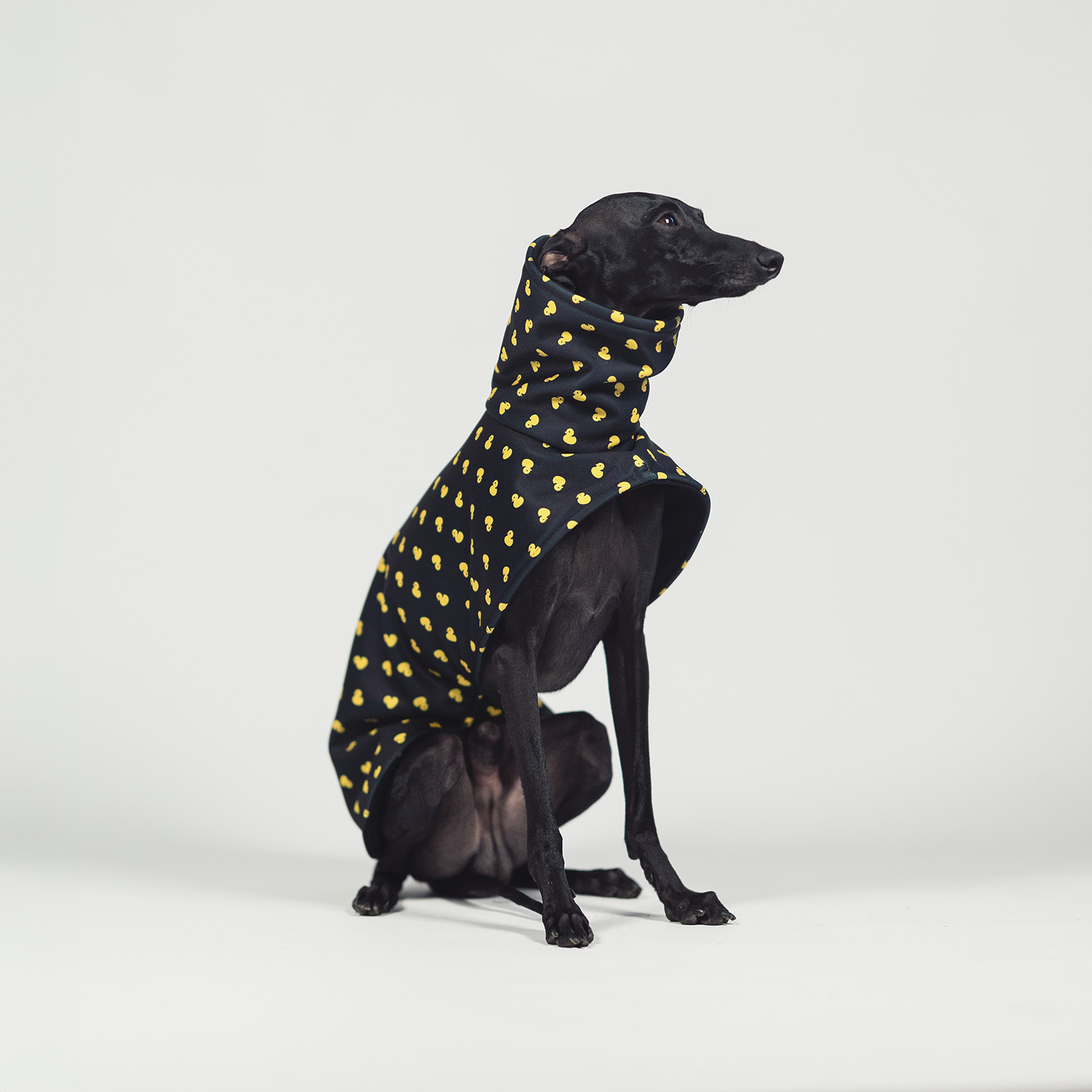 Kurtka dla charcika włoskiego wykonana z tkaniny Softshell® nowej generacji z membraną poliuretanową i apreturą wodoodporną.