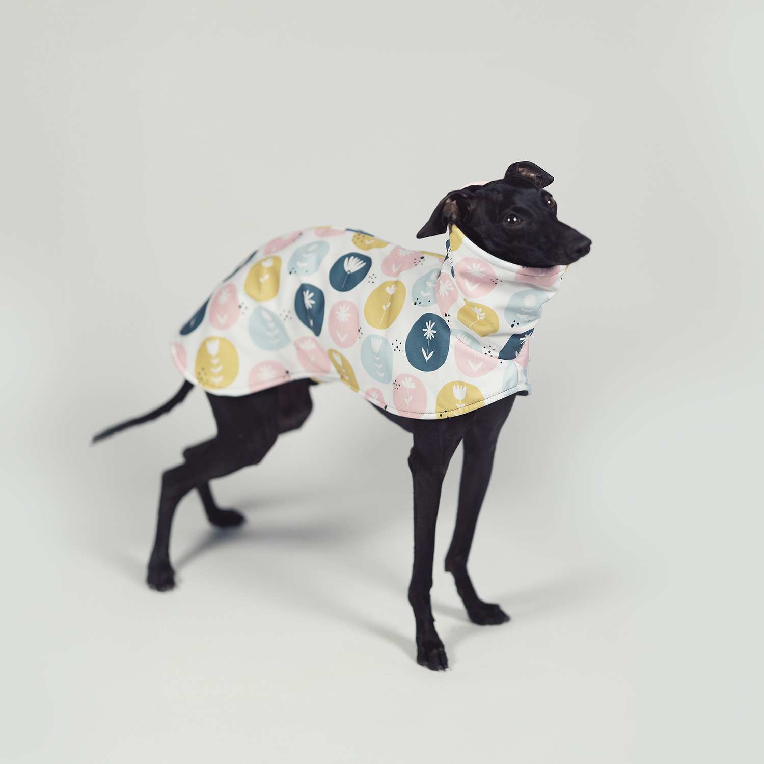 Kurtka dla charcika włoskiego wykonana z tkaniny Softshell® nowej generacji z membraną poliuretanową i apreturą wodoodporną.