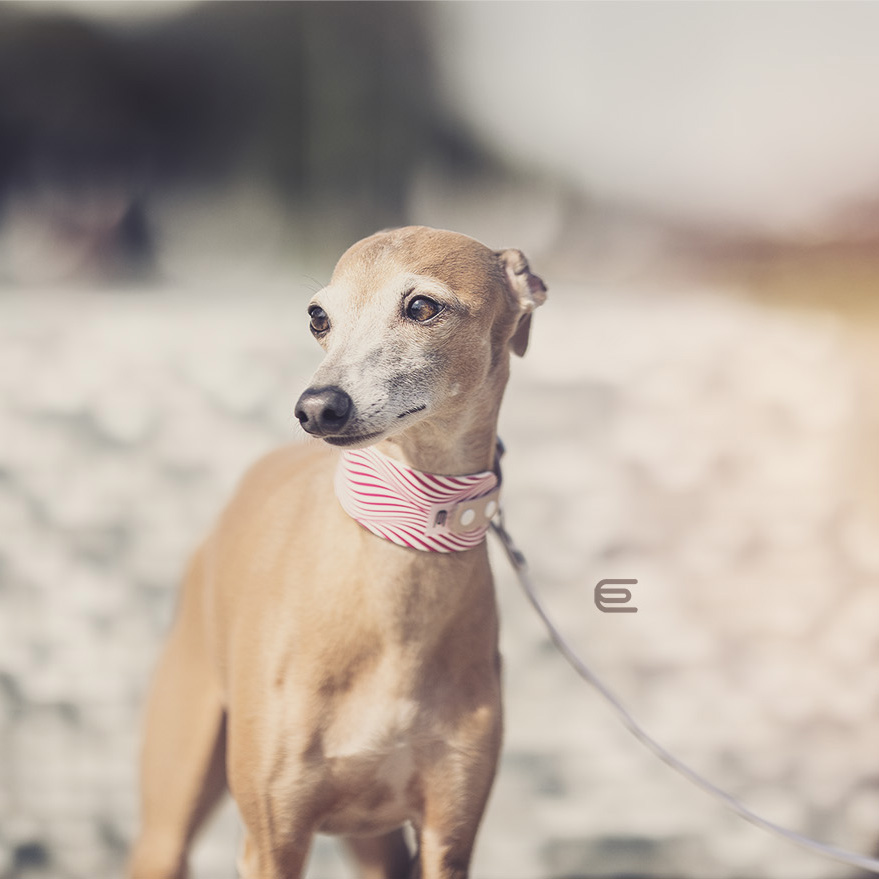 Kolorowa, łatwa w czyszczeniu obroża dla charcika włoskiego wykonana z wodoodpornej taśmy BioThane®.