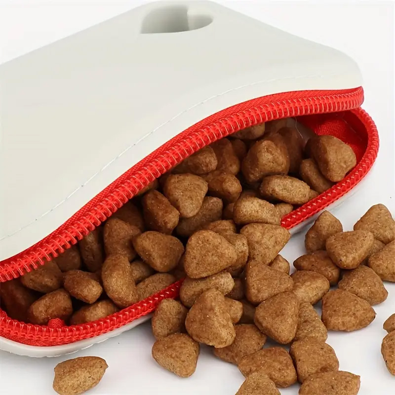 Śliczna, silikonowa saszetka na psie smaczki. Posiada rączkę i karabińczyk, który można przypiąć np. do smyczy.