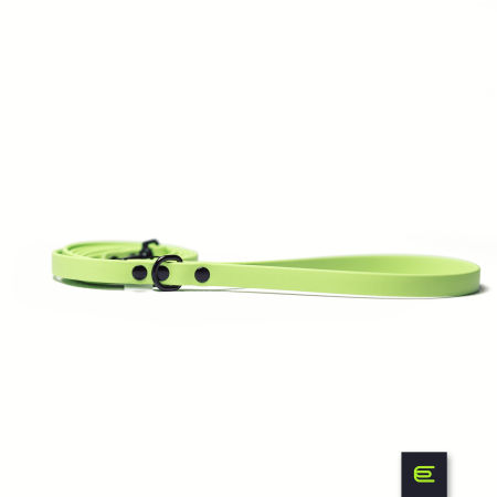 BioThane® to materiał produkowany i opatentowany w Stanach Zjednoczonych. Przeszedł testy wytrzymałościowe i jakościowe. Jest miękki i elastyczny, imituje skórę, grubość materiału to 2,5mm. Smycz jest łatwa w czyszczeniu, nie tnie dłoni i zapewnia pewny - antypoślizgowy chwyt.