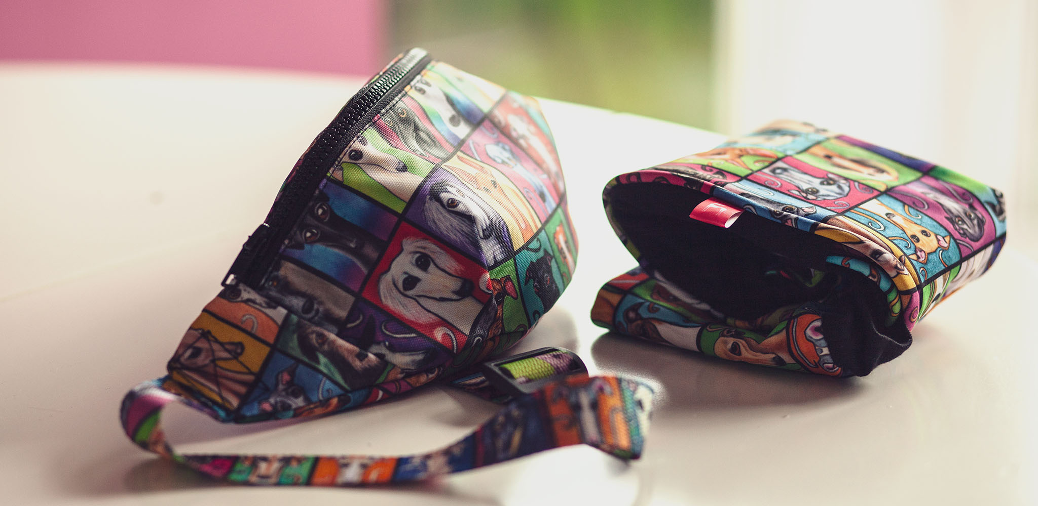 Jeszcze w 2018 roku, chwilę po ogłoszeniu nowej kolekcji na jesień, pojawił się u nas nowy produkt - saszetki, które printem można było dopasować do ubranka dla charcika. Wykonane z plecakowej tkaniny saszetki były wodoodporne,a pasek kolorystycznie dobrany był do wzoru. Nerki cieszyły się sporym powodzeniem, do dzisiaj szyjemy je dla zagranicznych sklepów.